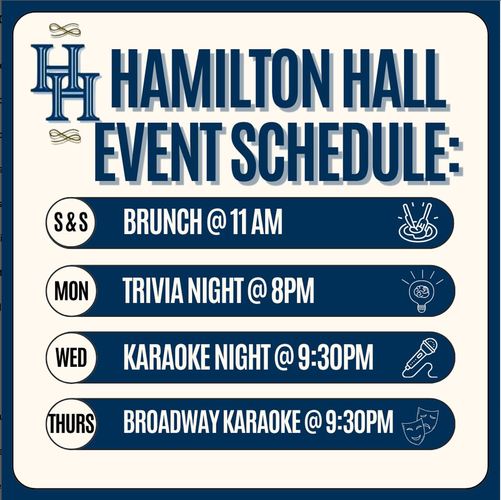 Hamilton Hall (3493 Broadway between West 142nd and 143rd) has a lot of weekly specials going on. To be clear, when I click on the events schedule (which I have to do on IG because the website is way out of date), Hamilton Hall tells me about “shot specials, great drink deals, beer buckets/pitchers, combo app towers and more!” So it’s that kind of place. And if that kind of place is your kind of place, then you’re going to love what comes next, which is fun events basically every day of the week. Monday is trivia at 8pm, Wednesday is karaoke at 9:30pm and Thursday is Broadway karaoke at 9:30pm (whoa).